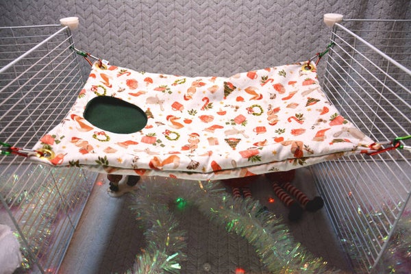 Ajoutez une touche de magie de Noël à la cage de vos compagnons grâce à ce hamac cachette aux couleurs et motifs festifs. Il est conçu pour offrir confort, sécurité et plaisir, tout en décorant joliment leur espace de vie.