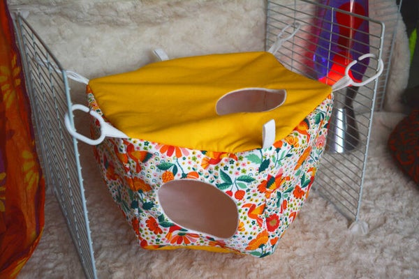 Ce donjon de forme hexagonale est un lieu idéal pour allier exploration et repos. Avec ses quatre ouvertures stratégiquement placées (trois sur les côtés et une sur le dessus), vos petits animaux pourront s’y faufiler, se cacher ou simplement profiter d’un dodo bien mérité.